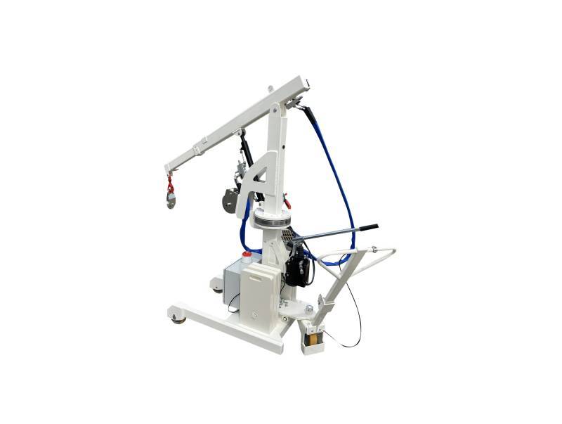 Die MINIMOB 03 RTC ist ein kompakter Handkran mit einer Hubkapazität von bis zu 315 kg. Sie ist mit einem Teleskop ausgestattet, das das Erreichen einer Last bei einer Ausladung von 1,25 m ermöglicht. Optional verfügt sie über einen manuellen 18°-Drehkranz, mit dem die seitliche Position des Hakens präzise eingestellt werden kann.